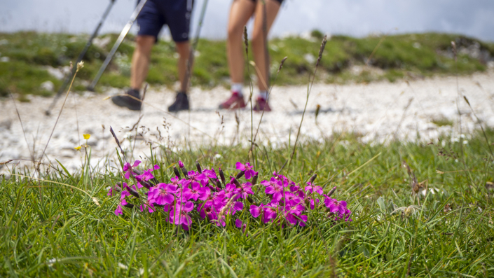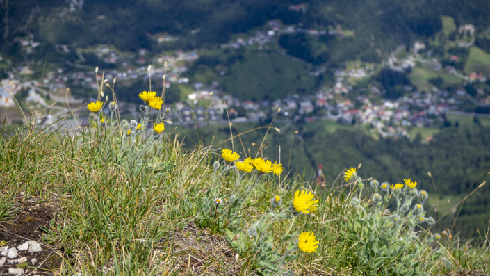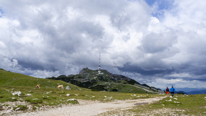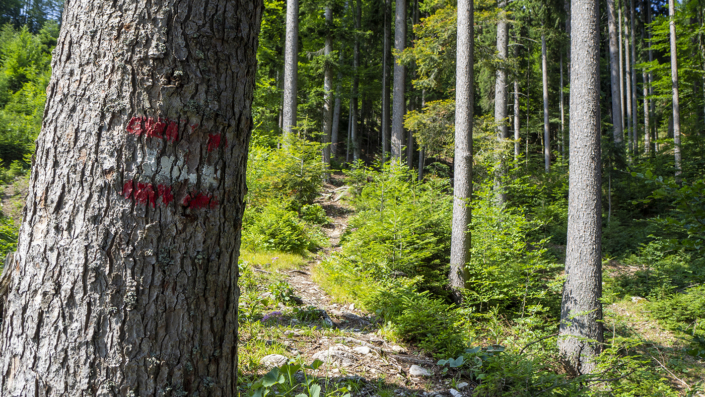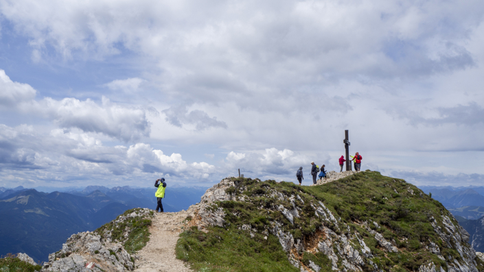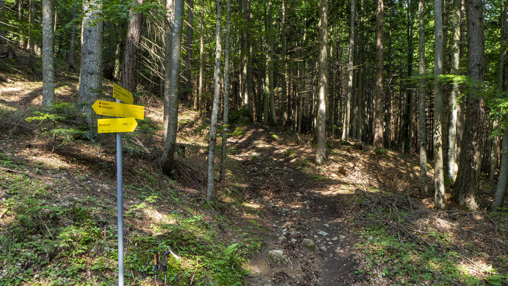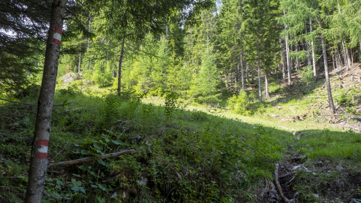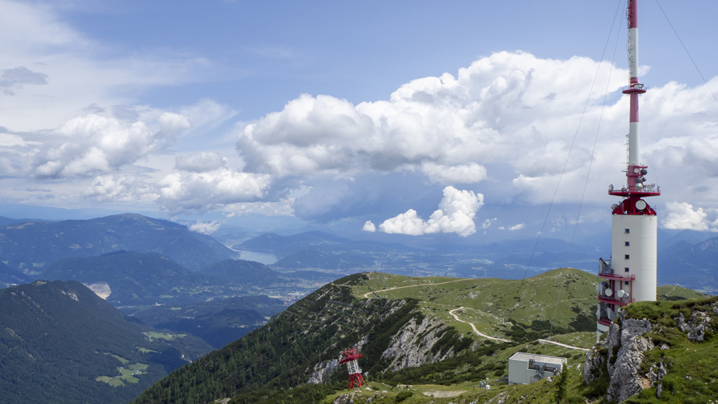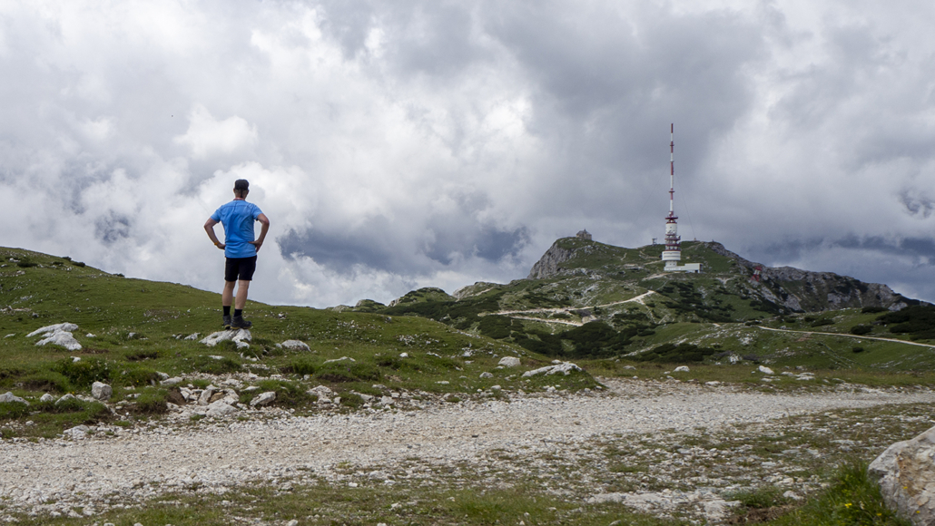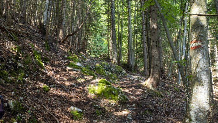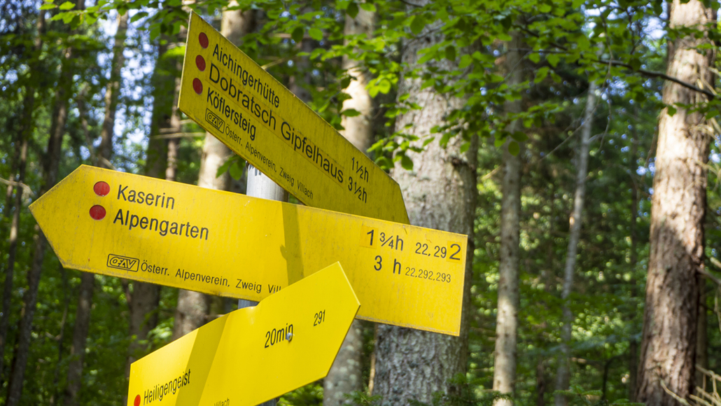 13. Juli 2019 ….. ich setze meine Dobratsch Gipfeltouren heute mit dem Aufstieg von Heiligengeist fort. Man folgt vom Parkplatz der brüchigen Asphaltstraße Richtung Sudwesten bis man auf die alte Schipiste gelangt. Dort ca. 500 Meter aufwärts, danach biegt man bei einer „rot-weißen“ Markierung nach rechts in den Wald und folgt den so genannten KÖFLERSTEIG (AV-Weg Nr. 291). Nach ca. einer 3/4 Stunde erreicht man wieder die alte Skipiste (Familienabfahrt) und folgt der Piste, vorbei an alten Liftstation im Waagtal, steigt etwas später über einen gesicherten Überstieg und erreicht die Rosstratte knapp unterhalb des Zehners (allein stehender Baum mit Wegweiser, wer Lust auf eine Einkehr hat, geht in ca. 10 Minuten zum Rosstrattenstüberl). Nun gerade, etwas steiler, hinauf und den breiten Schotterweg zum Gipfel des Dobratsch (gleicht sich übrigens mit einer Skitourenroute). Für den Aufstieg sind  knapp 1300 HM zu bewältigen 😉