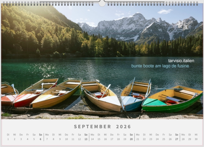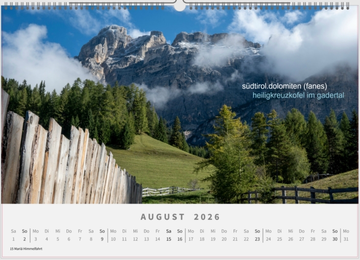 Mein Kalender Bergbild_2026, stellt eine Reise quer durch Österreich und darüber hinaus dar. Verschiedene Stationen beleben das Jahr, von den alpinen Bergen bis zu den Weinbergen.