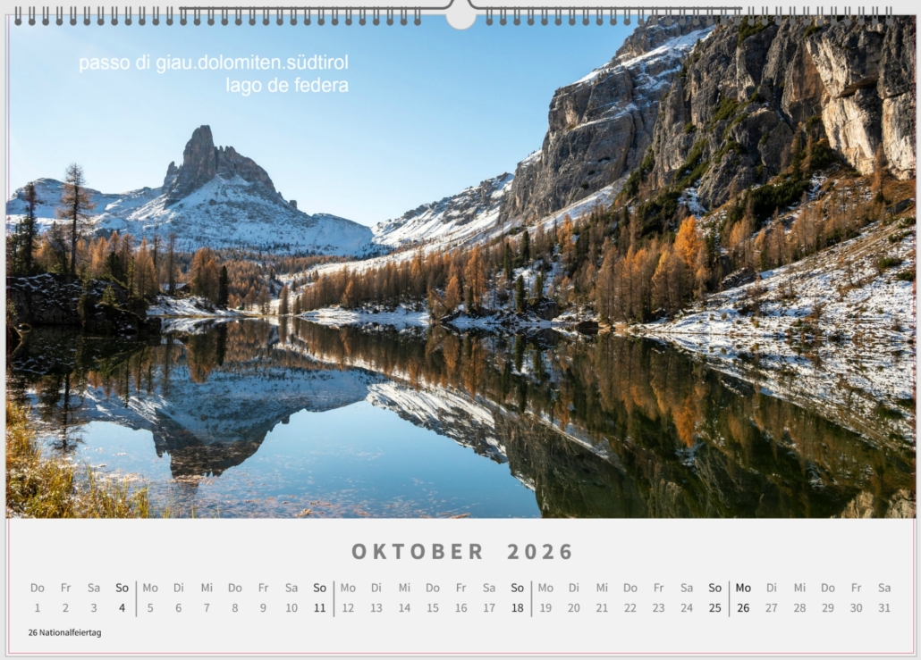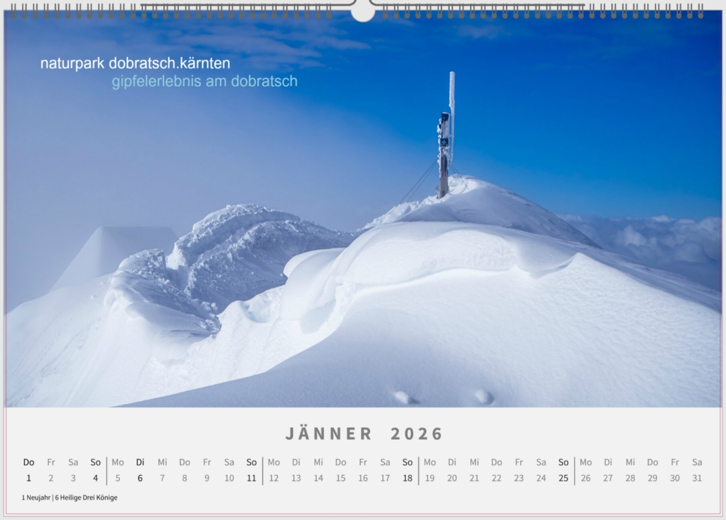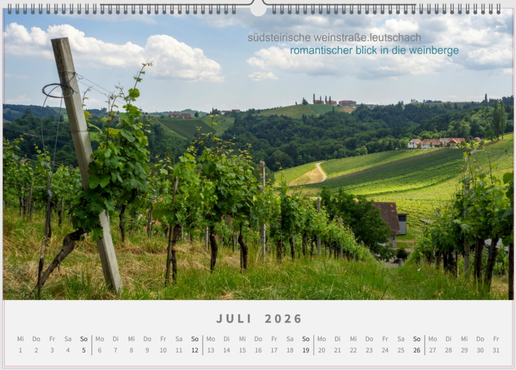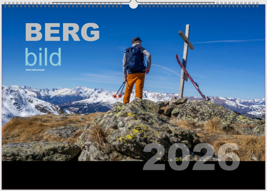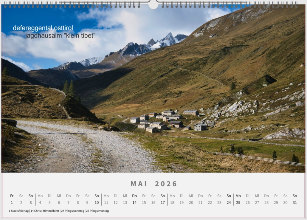Mein Kalender Bergbild_2026, stellt eine Reise quer durch Österreich und darüber hinaus dar. Verschiedene Stationen beleben das Jahr, von den alpinen Bergen bis zu den Weinbergen.