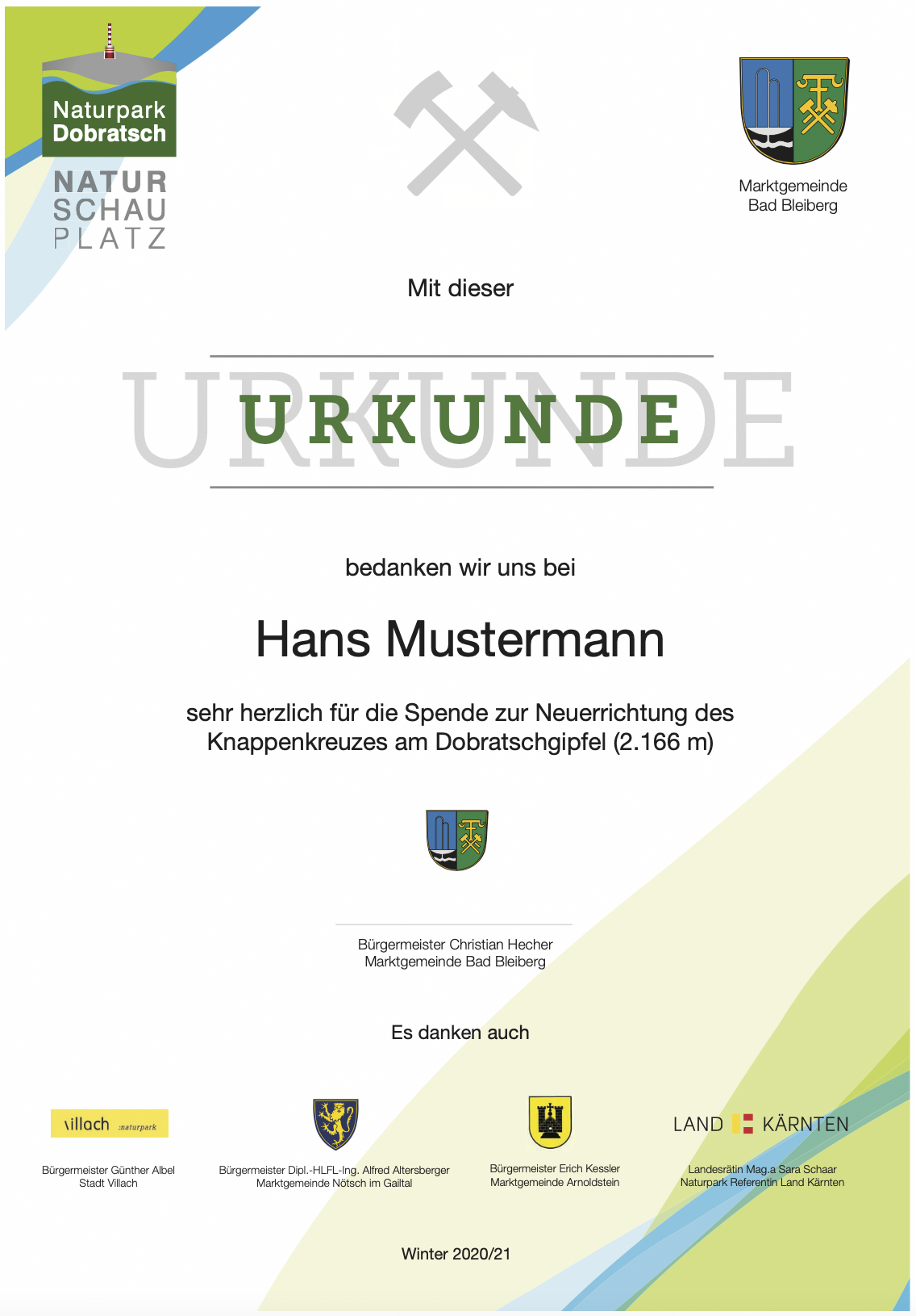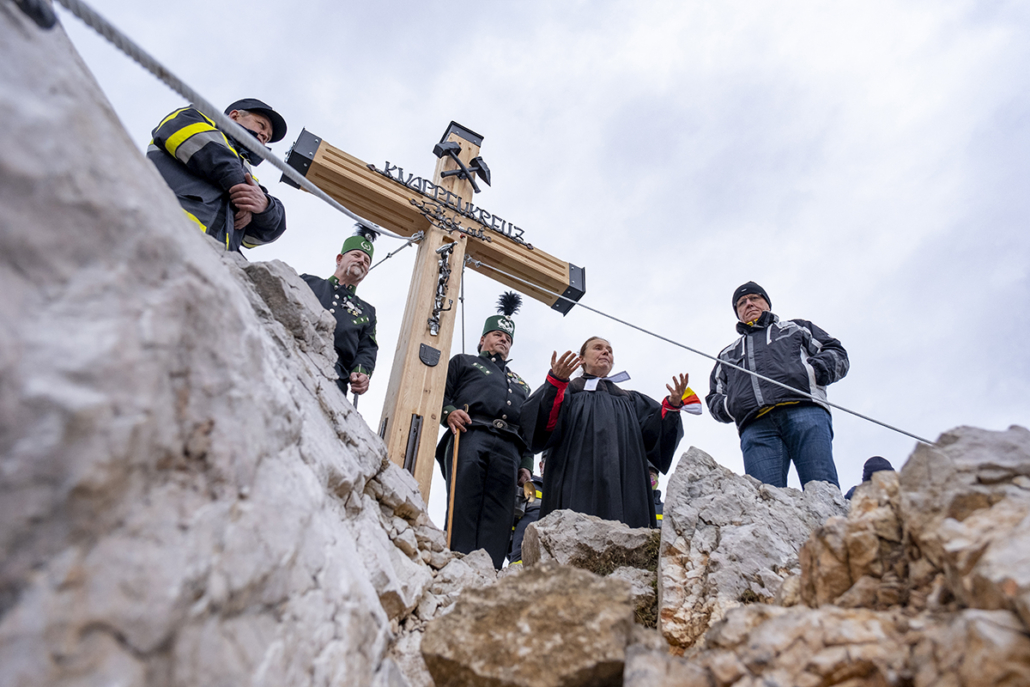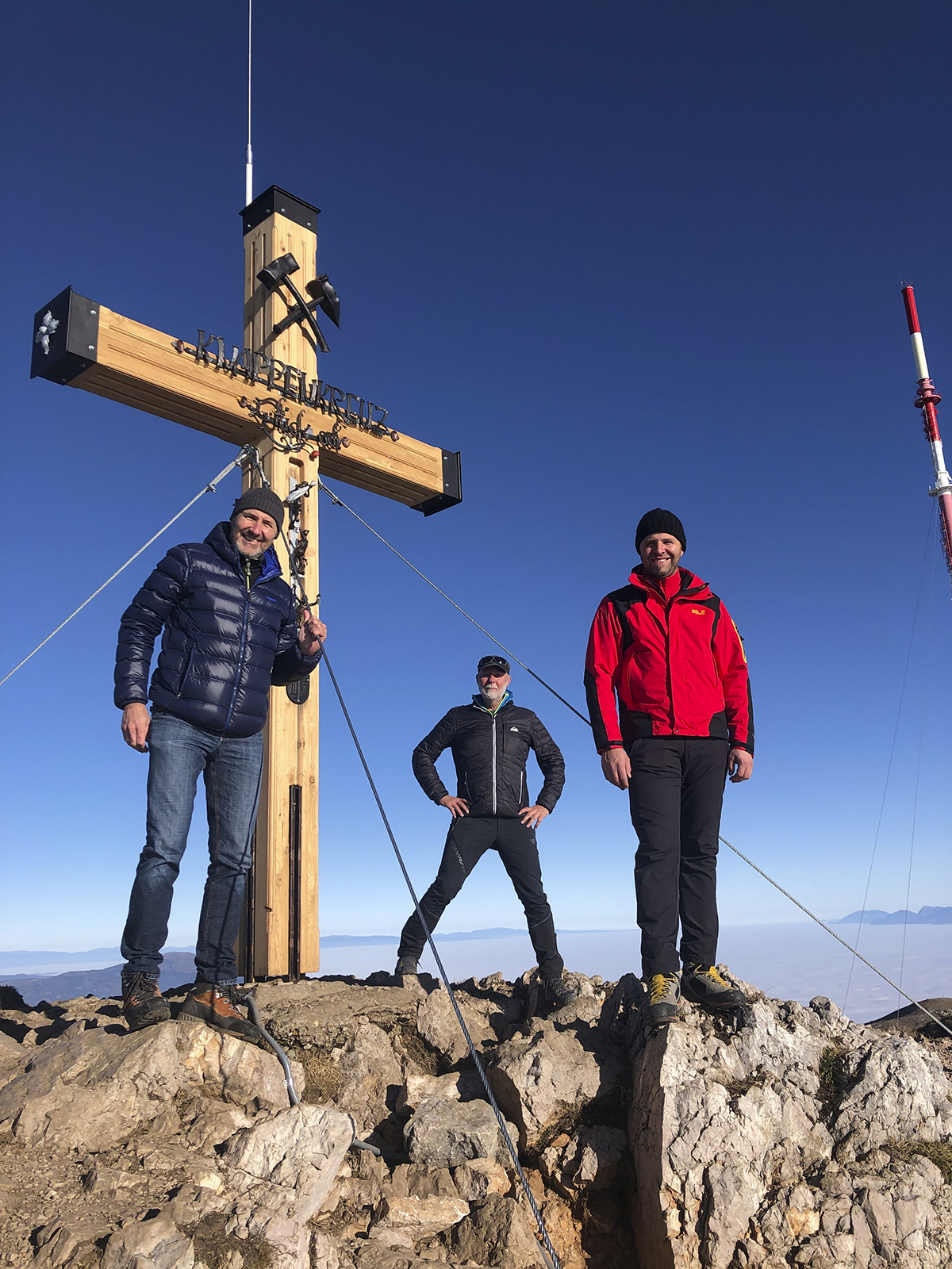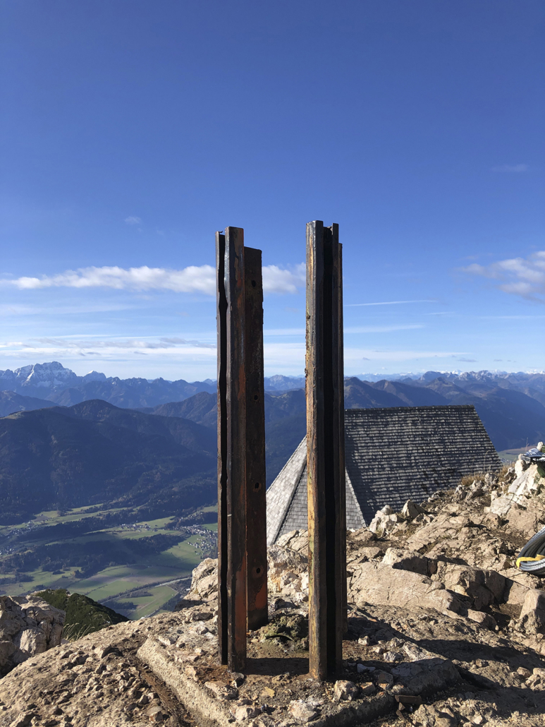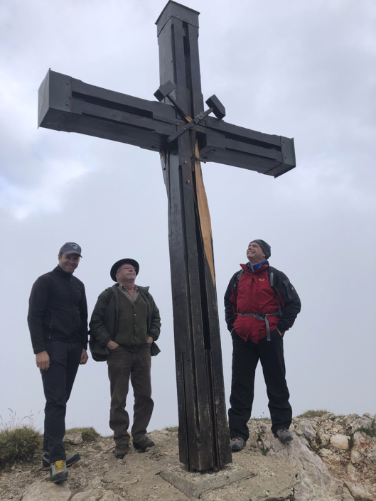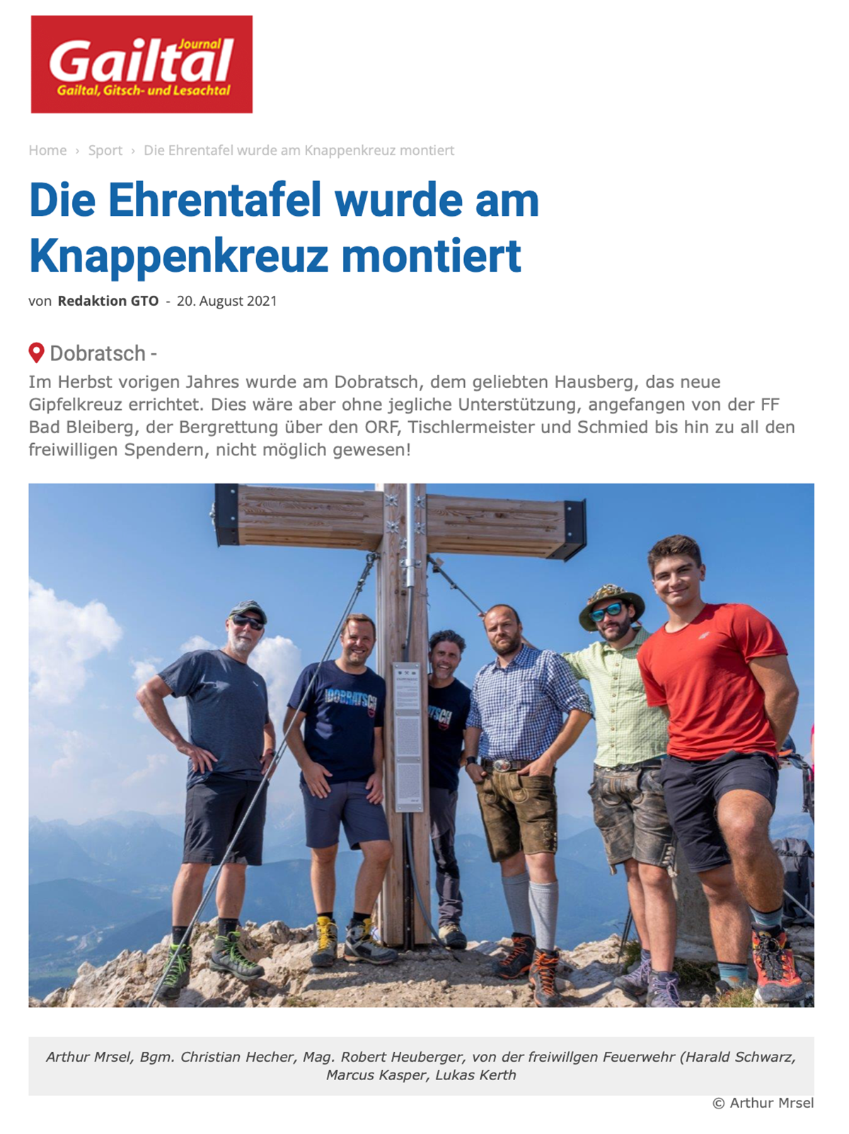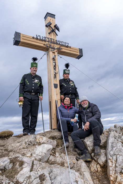 30.10.2020. Das neue Knappenkreuz am Gipfel des Dobratsch…… Als ich davon hörte, dass vom 1. auf den 2. August 2020 ein Blitz in das alte Gipfelkreuz einschlug, musste ich sofort auf den Dobratsch. Es stellte sich sogleich heraus, dass eine Reparatur nicht möglich war. Bereits am Nachmittag, zu Hause am Balkon, begann ich die ersten Entwürfe zu zeichnen, wie das Knappenkreuz aussehen könnte. Einfach so, noch lange nicht mit dem Gedanken spielend, dass die Geschichte damit zu laufen begann. Für den Bürgermeister von Bad Bleiberg, Christian Hecher, stand außer Zweifel, dass wir Bad Bleiberger das neue Gipfelkreuz bauen und errichten werden, obwohl scharfer Gegenwind aus Villach entgegenbließ. Der Dobratschgipfel befindet sich im Gemeindegebiet von Bad Bleiberg, der Grund gehört den Österreichischen Bundesforsten. In einem eilig einberufenen „runden Tisch“ im Knappenhaus wurde das Vorhaben präsentiert und ich konnte meinen Entwurf – gegenüber dem Villacher Alpenverein vorstellen, welcher dann auch angenommen wurde. Mein klares Bekenntnis zur Bergbautradition, den verwendeten Materialien und dem Bezug zum Bleibergertal gaben den Ausschlag. Für mich als Bergfex war das eine große Freude. Danke an die Marktgemeinde Bad Bleiberg, mit Bürgermeister Christian Hecher, für das Vertrauen und für diese ehrenvolle Aufgabe.