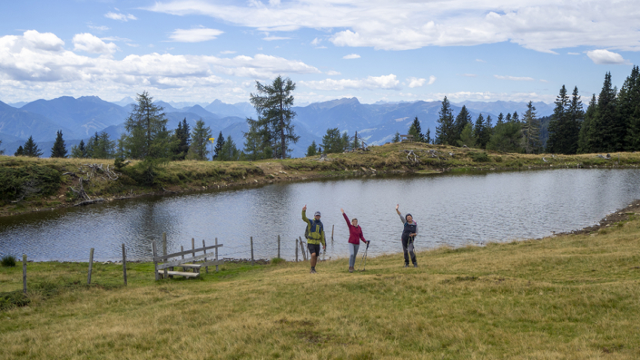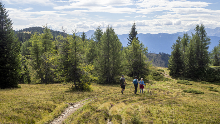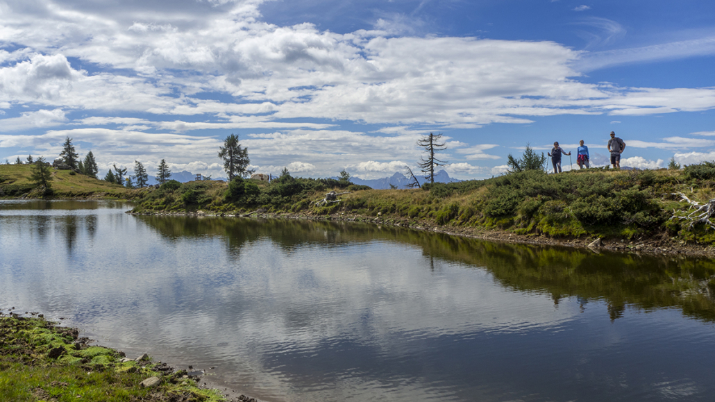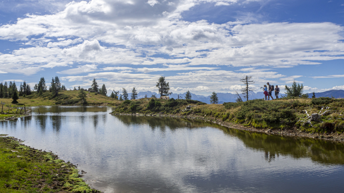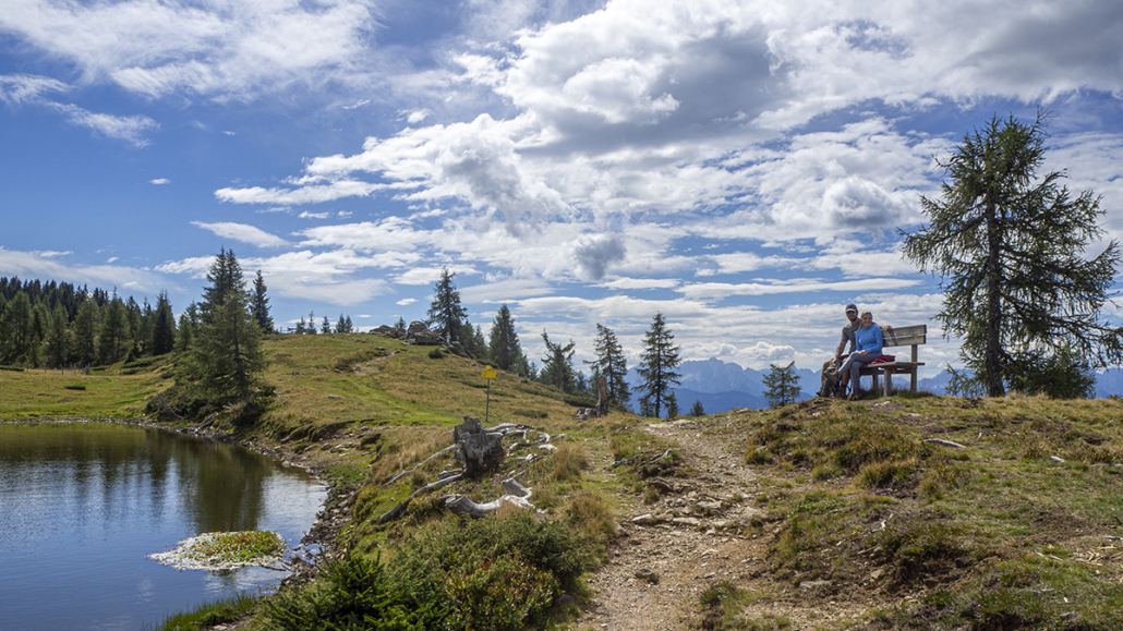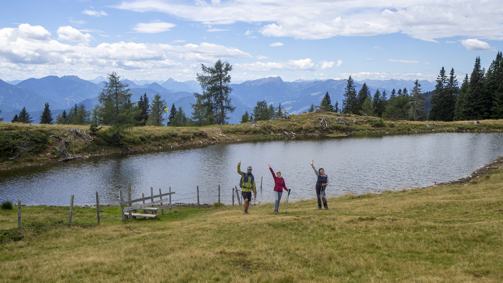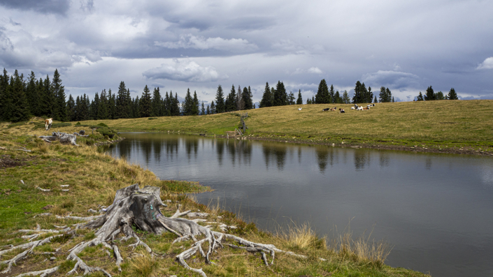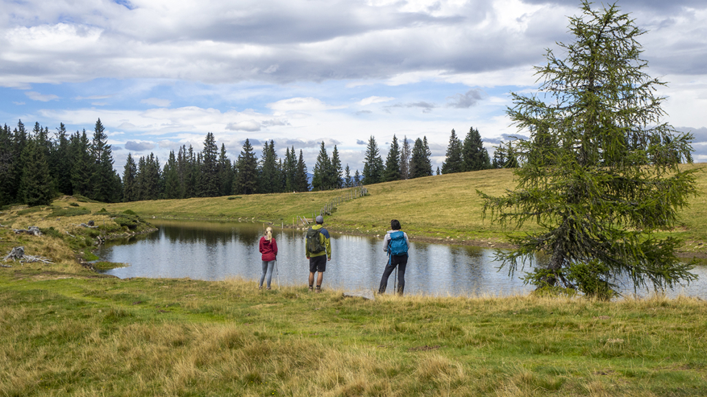 Covid _19 ………21.08.2022. Eine einfache, aber landschaftlich lohnende Wanderung in den Kärntner Nockbergen bieten sich auf den Gipfel des Palnock an, wenngleich zu Beginn die Höhenmeter kräftig ansteigen. Beim kleinen Parkplatz beim Alpengasthaus Walder, noch ober Fresach am Amberg, beginnt die Rundwanderung. Die ersten 300 HM haben es schon in sich, erst bei Erreichen der obersten Waldlichtungen flacht das Gelände etwas ab. Ich bevorzuge die Rundwanderung im Uhrzeigersinn durchzuführen, weil das Gipfelziel „Palnock“ im Vordergrund steht und danach, immer auf schönen Wegen, der „Schwarzsee“ ein idyllischer Ort der Stille zum Verweilen einlädt. Ein Abstecher zur Schwarzseehütte ist sowieso ein „muss“ …. und nach einer Stärkung sind die 100 HM von der Hütte zum See etwas beschwerlich Der Abstieg erfolgt dann am AV-Weg Nr. 178, welcher durch dichten Wald und teilweise mit steingepflasterten Pfaden zurück zum Alpengasthaus Walder führt, zuletzt über den Fahrweg. Für das kostenlose Parken sollte eine Einkehr im urigen Gasthaus nicht fehlen. Daten: ca. 750 HM inkl. Auf und Ab, Wegstrecke ca. 9,5 KM in ca. 3,5 Stunden (ohne Pausen). Viel Spaß