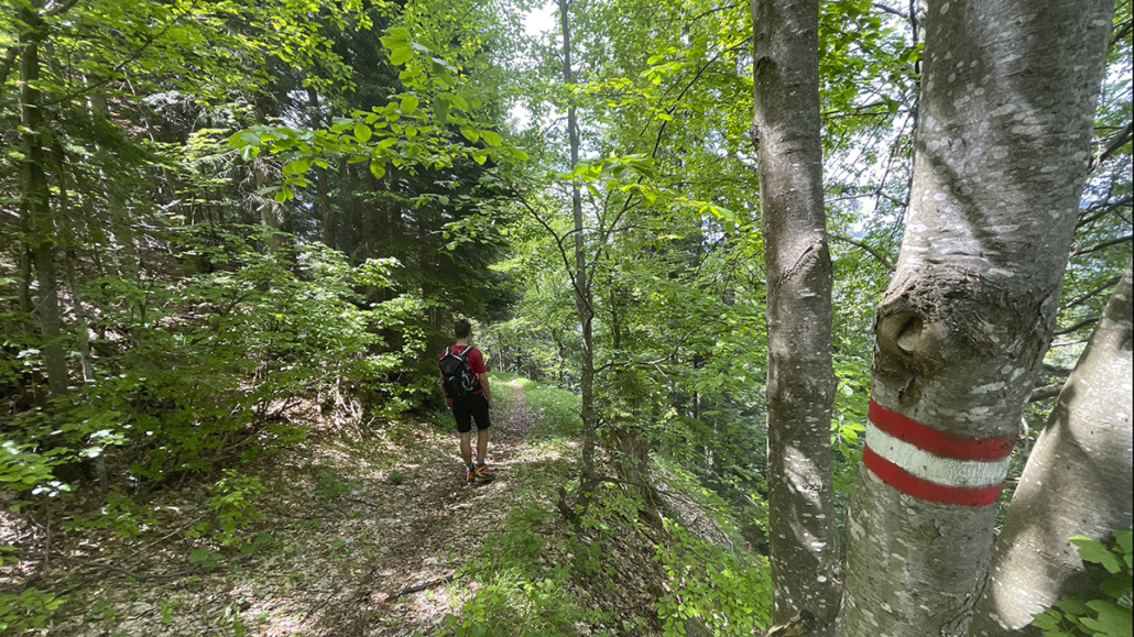 INFORMATION:Der Schartensteig ist ein alter „Geißsteig“ der Bleiberger Knappen. Die Tiere wurden auf den Dobratsch zu Halt gebracht, Steigspuren sind deutlich sichtbar und anfangs durch rote Punkte gekennzeichnet. Der Steig ist nicht in AV-Karten eingezeichnet und ist kein offizieller Wanderweg. Der Steig erfordert Konzentration und Achtsamkeit. Glück Auf!
